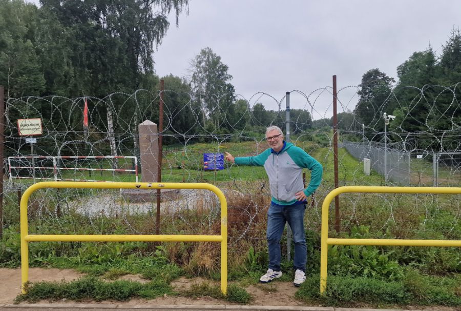 Alle 14.05 siamo alla piazzola già visionata su internet da dove non si può proseguire, se non a piedi. Non piove, ma quasi. A 400 metri c’è il triplice confine, e considerata la situazione internazionale e il nostro precedente bielorusso di qualche giorno fa, è già un miracolo che lo si possa ancora raggiungere. Così alle 14.15, per la terza volta in cinque mesi, mi trovo a ridosso di un confine russo senza poterlo oltrepassare. Per la verità, in questo “Obelisk przy trojstyku” non c’è un passaggio pedonale o automobilistico. Nessun valico, nessuna guardia (almeno visibile a noi, perché dietro gli alberi qualche russo armato verosimilmente dovrà pur esserci). Solo filo spinato a iosa, percorso da elettricità ad alta tensione, e telecamere. Il confine polacco-lituano di fatto non esiste. Esiste il cippo di marmo marrone dove convergono i confini di Polonia, Lituania e Russia, e poiché quest’ultima è off-limits causa guerra in Ucraina e tensione con l’Occidente, è tutta contornata da ulteriore filo spinato e diavolerie varie. Scattiamo varie foto davanti quest’insolito confine così ermeticamente chiuso, quindi un quarto d’ora dopo di chiacchiere “politiche” fra noi stessi e con una coppia italiana lì trovata, ci gustiamo un gelato sotto la pioggia offerto dal mio primogenito e alle 14.40 raggiungiamo la macchina. A stupirmi, più dei vari cartelli al di qua e al di là del filo spinato, una bandiera rossa in territorio russo recante ancora la falce ed il martello. Dubitando che sia stata lì dimenticata dal 1991 ad oggi (sarebbe perlomeno sbiadita e logorata), immaginiamo sia stata messa a scopo turistico. Non vedo francamente altra spiegazione. La strada, intanto, ci regala le ultime dacie e gli ultimi scorci campestri, perché da Suwalki in poi (il cosiddetto “corridoio di Suwalki” è coi suoi 60 chilometri il passaggio più breve fra Russia ed exclave di Kaliningrad) fino a Varsavia è tutta autostrada...