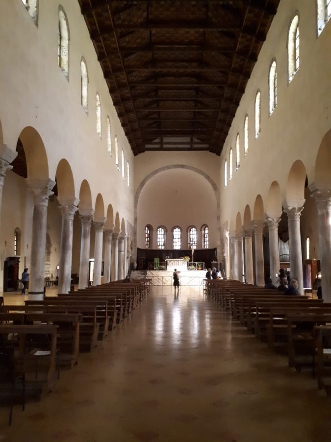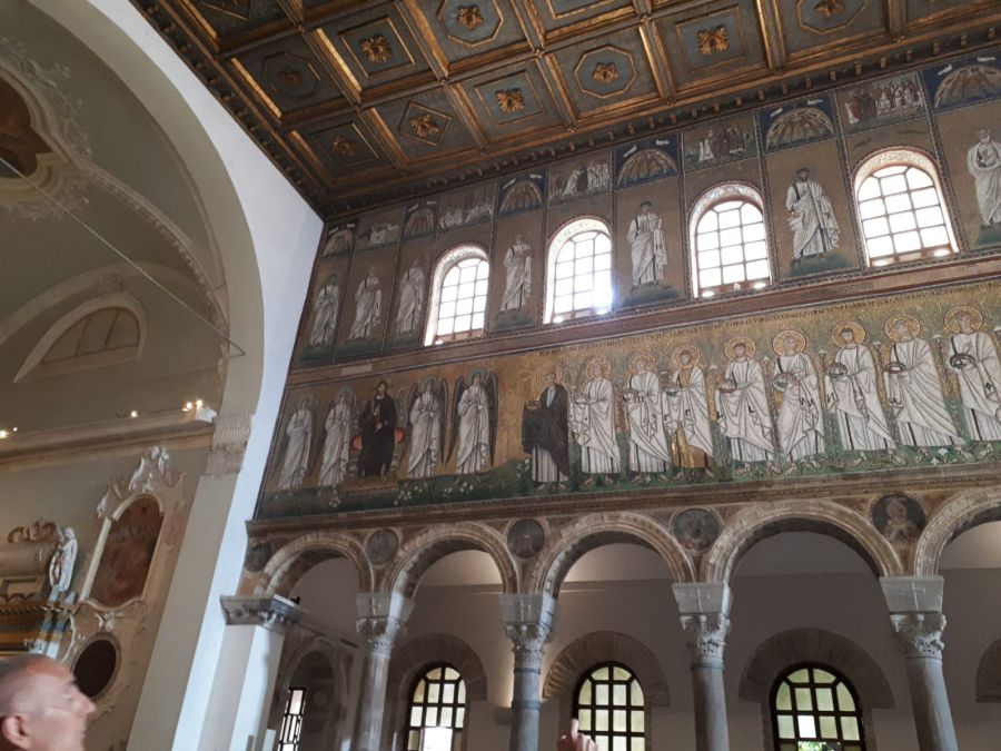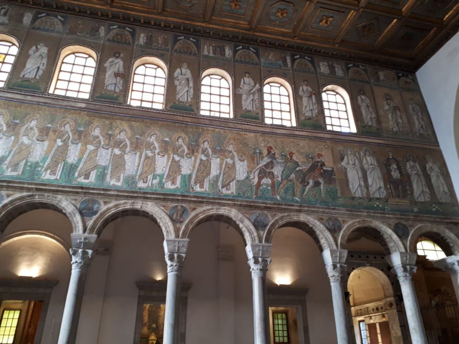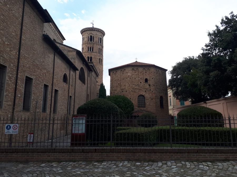 Ravenna si presenta come un'anomalia nel panorama delle città italiane. non ha conservato tracce evidenti del castrum romano dove Giulio Cesare si fermò prima di decidere di attraversare il Rubicone e marciare verso Roma. ha un dedalo di vie che seguono l'antico andamento dei corsi d'acqua che la percorrevano, tra cui il Po e si dirigono verso il mare che un tempo lambiva la città e di cui si conserva un ricordo nel canale verso la stazione ferroviaria. una città splendente tra V e VI secolo di mosaici pavimentali e parietali custoditi in scrigni di mattone; una città dai misteriosi e unici campanili cilindrici che affiancano le chiese paleocristiane nel XII secolo; una città in cui le cose non sembrano essere cio' che sono: negozi con affreschi di chiese barocche, palazzi costruiti su resti di chiese e canali antichi lasciati a vista una cappella di palazzo grande come una basilica - sant'apollinare nuovo - che nasconde enigmi tra le tessere dorate dei mosaici (mani che spuntano disegnate sulle colonne del Palatium; storie di Cristo in una sequenza non aderente ai racconti dei Vangeli sinottici, lettere scritte sulle vesti dei santi che sfilano verso Cristo in trono, forse corrispondenti ad antiche note musicali; una vasca di pesci rossi che altro non è che una cripta). senza contare che Ravenna fu città di Dante, che vide i capolavori delle chiese e ne trasse ispirazione per la sua Divina Commedia. sepolto nel convento francescano, fu reclamato da Firenze e fu osannato e 'santificato' negli anni '20 del Novecento come precursore dell'Italia unita. città coi piedi in acqua - il bradisismo da secoli fa abbassare il livello del terreno sotto le acque - e con la testa sulle spalle - pratica, concreta ed operosa.