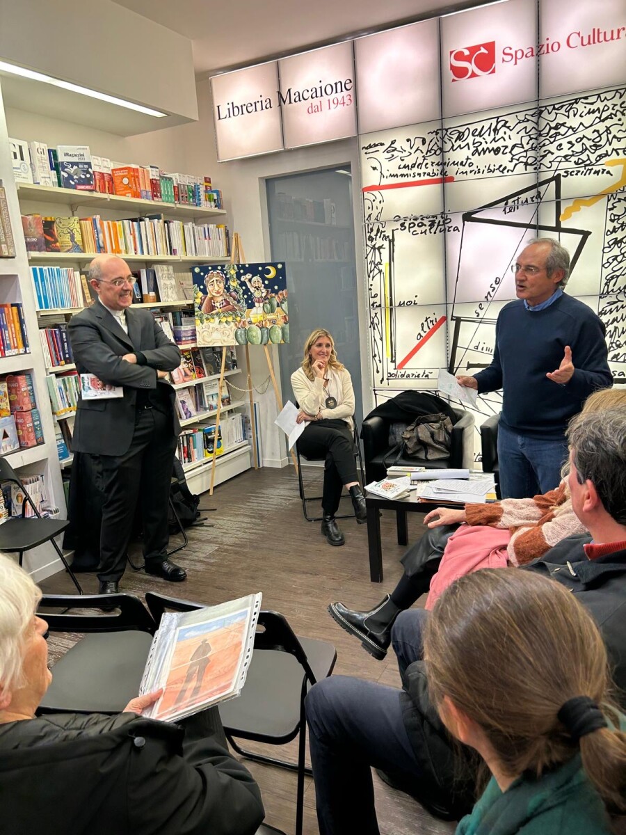 All’incontro era presente l’autore che ha discusso con Natale Surano, architetto paesaggista, specializzato nella progettazione e restauro di giardini storici. Responsabile impianti e aspetti paesaggistici dell’orto botanico di Palermo, appassionato di tennis e padre del giovane tennista d’interesse nazionale Riccardo, e don Giuseppe Brighina, docente di religione presso il liceo Classico G. Meli.