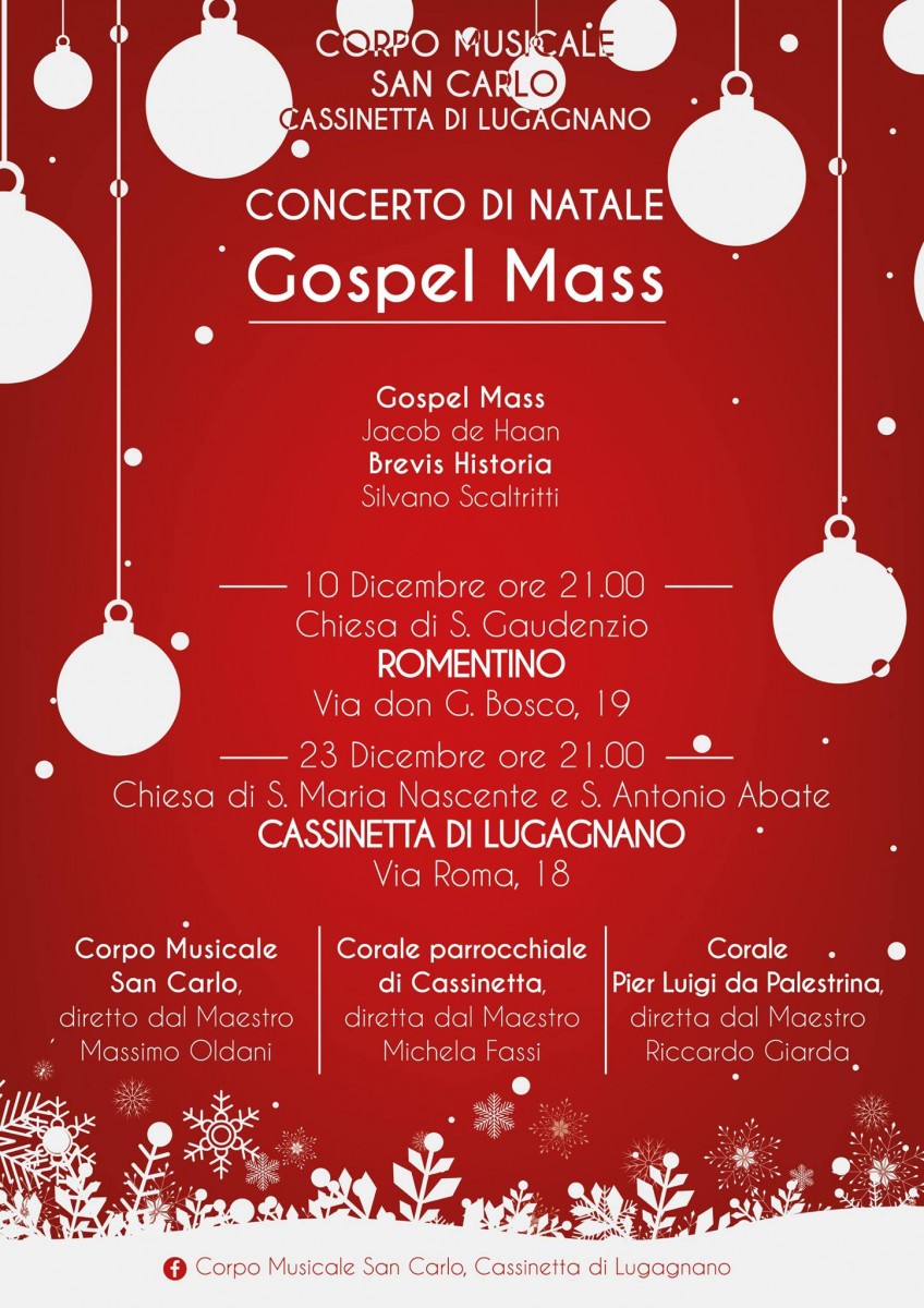 Per maggiori informazioni: https://www.facebook.com/corpomusicalesancarlocassinetta/?fref=ts