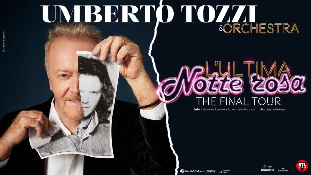 Dopo 50 anni di una carriera costellata di successi e riconoscimenti in Italia e nel mondo, più di 80 milioni di dischi venduti e oltre 2000 concerti, UMBERTO TOZZI dà il suo addio alla scena live con uno straordinario tour mondiale, “L’ULTIMA NOTTE ROSA THE FINAL TOUR” che attraverserà 3 continenti tra il 2024 e il 2025. L’artista celebrerà l’imperdibile gran finale dedicando al pubblico italiano due date evento in cornici magiche e suggestive, il 20 giugno alle Terme di Caracalla di ROMA e il 7 luglio in Piazza San Marco a VENEZIA. Seguiranno in Italia altre 6 date speciali nel 2024: il 22 agosto a Villa Bellini a CATANIA, il 28 agosto al Sferisterio di MACERATA, il 4 settembre in piazza dei Signori per il VICENZA in Festival, il 13 settembre alla Reggia di CASERTA, il 5 ottobre al Forum di MILANO e il 12 ottobre all’InAlpi Arena di TORINO.