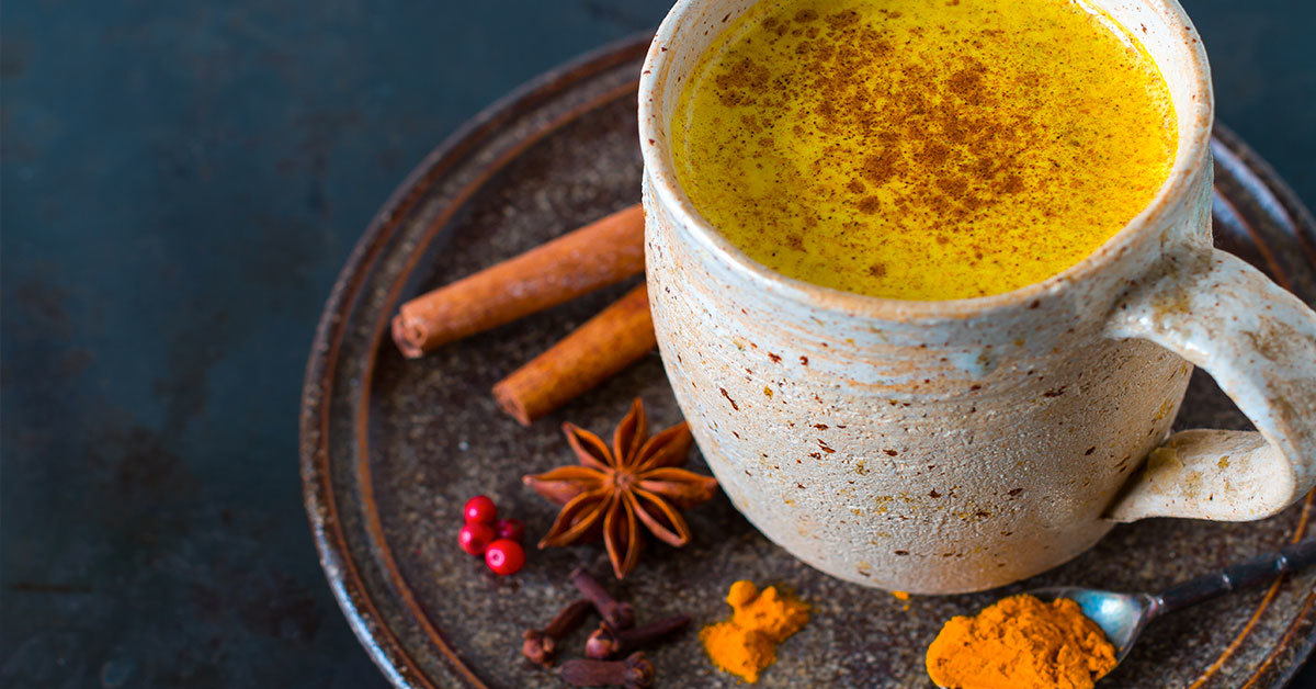 Per un bicchiere di Golden Milk, preparate e lasciate raffreddare ½ tazza di Infuso Curcuma Indiana Pompadour. Mettetelo in un blender insieme a 1⁄4 bicchiere di spremuta di arancia, 1⁄4 tazza di latte di cocco, 1 fettina di ananas, 1 pizzico di polvere di cannella. Frullate per 2 minuti con 5 cubetti di ghiaccio. Servite decorando con del rosmarino e una fetta di lime in un bicchiere da Martini.