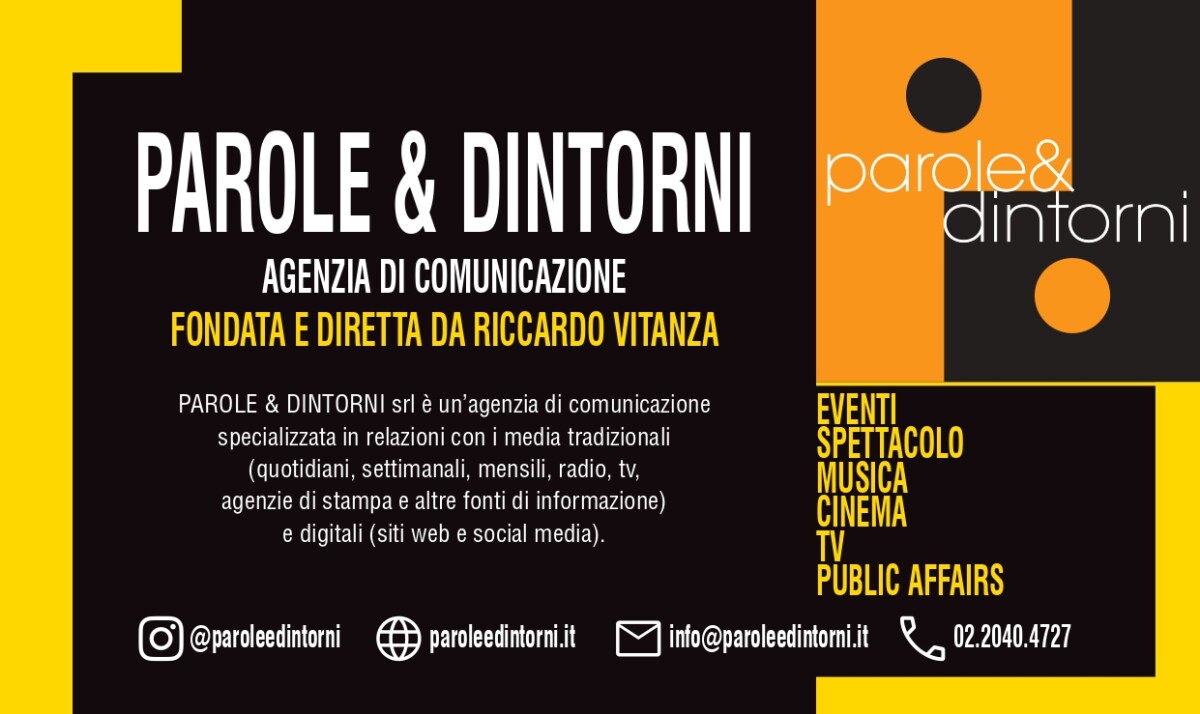 All’interno di PAROLE & DINTORNI srl la nuova Area Promozione Radio e Tv (Responsabile Stefano Seresini) si aggiunge all’Area Comunicazione e Ufficio Stampa (Responsabile Marta Falcon, vice Francesco Di Mento, Giulia Orsi e Sara Testori) e all’Area Public Affairs (Responsabile Francesco Maria Gallo).