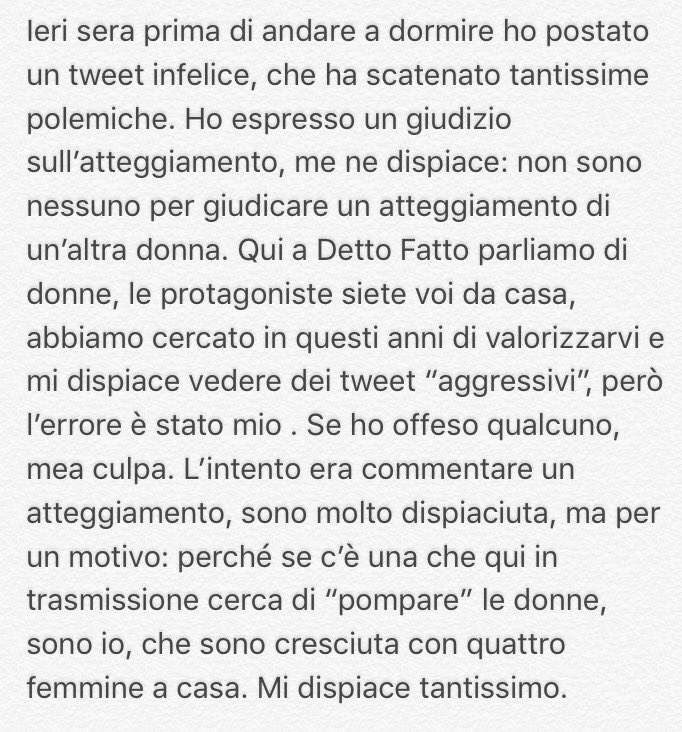 Tutte saremmo libere di girare con minigonne giropassera (io ho iniziato proprio da un paio di settimane e sono più figa oggi che a 20 e mi sento a mio agio), senza subire gli sguardi bigotti di uomini e tante donne. La stortura che evidenzio è lo sgomento di tutti per una verità, uscita dalle dita della Balivo, mentre digitava il post.