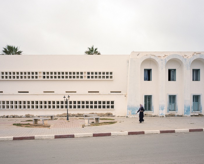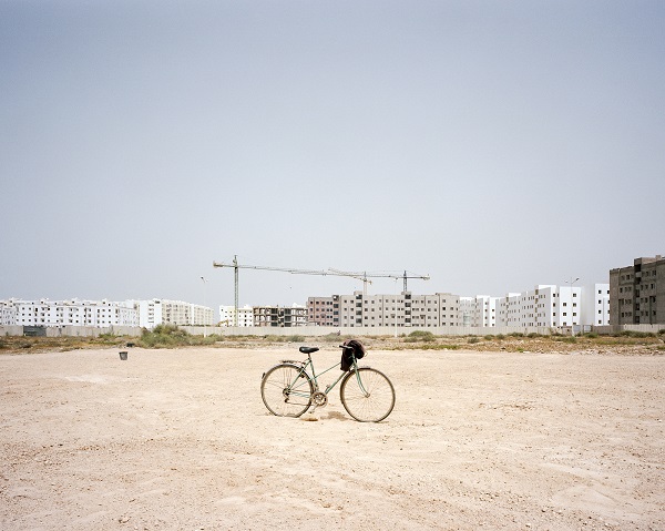 Il fotografo colleziona “sandlandscapes” durante il progressivo allontanamento dai luoghi centrali, più densamente abitati del Paese nordafricano, e riflette sulla immobilità e la distanza atemporale tipica di questi territori. Nelle immagini l’uomo compare inizialmente come co-protagonista al fianco dell’architettura, e scompare totalmente negli spazi a margine, caratterizzati dall’assenza e dall’abbandono. Lo spazio desertico nelle inquadrature aumenta parallelamente alla distanza percorsa e - proprio dove l’uomo rivela la propria assenza - l’architettura mostra una bellezza di forme purissime, scultoree. L’uomo è piccolo di fronte alla vastità del deserto, dove non è possibile mettere radici: vi restano i segni del suo passaggio, lasciati nel tentativo di addomesticare questo luogo selvaggio.