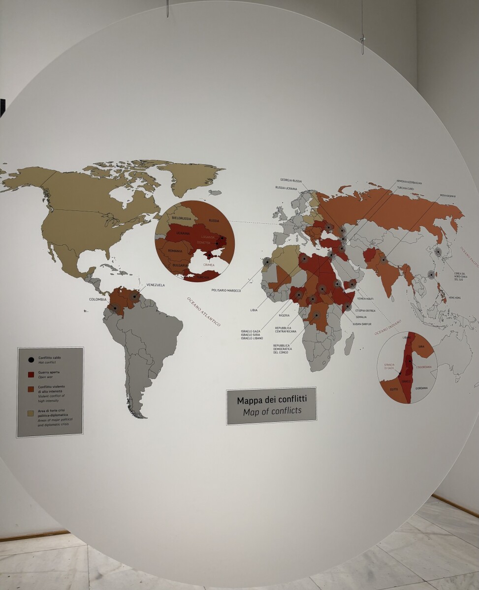 Il percorso espositivo si apre con Cities, una sezione che mette in evidenza il ruolo della città come luogo dove le disuguaglianze crescono più rapidamente e in modo sempre più visibile. Accanto a questa consapevolezza, vengono presentate proposte e progetti per ripensare al rapporto tra architettura, abitanti e opportunità, in una prospettiva di rinnovato equilibrio urbano. Seguono Ambiente, mobilità e cittadinanze, che affronta le disuguaglianze da una prospettiva territoriale, e Atlante del mondo che cambia, una mappatura globale di conflitti e migrazioni che restituisce un’immagine potente delle fratture – ma anche delle alleanze – geopolitiche contemporanee.