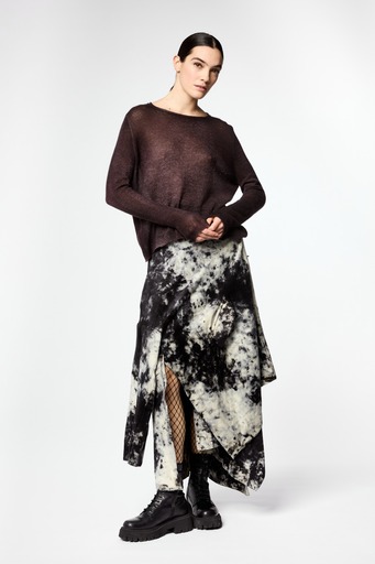 La pre-collezione AVANT TOI comprende un’originale colorazione ‘a spot’ su fondi anneriti ad aerografo con maglioni e felpe ultra-morbide, oltre a diversi capi in cashmere con un tocco consistente, compact, con volumi e vestibilità nuove. Sono presenti, inoltre, jacquard con grafiche astratte, maglie in cashmere e lana handpainted con effetto pilling casentino e con gradazioni camouflage o pennellate a più colori.