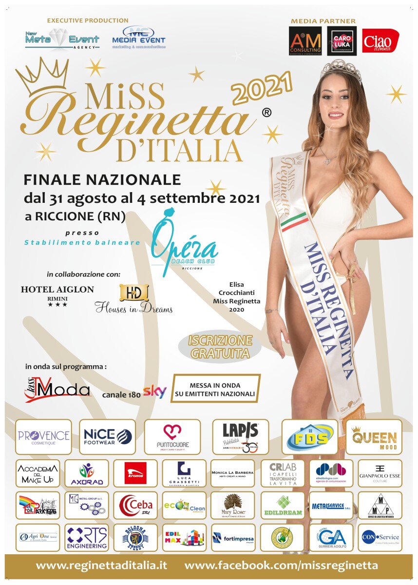 Si svolgerà Venerdì 2 luglio 2021 l’evento di moda e bellezza per la regione Lombardia del concorso Miss Reginetta d’Italia e Miss Reginetta d’Italia Over organizzata dall’Agenzia All Seasons Model Group di Stefania Bressan e Luciano Albani.