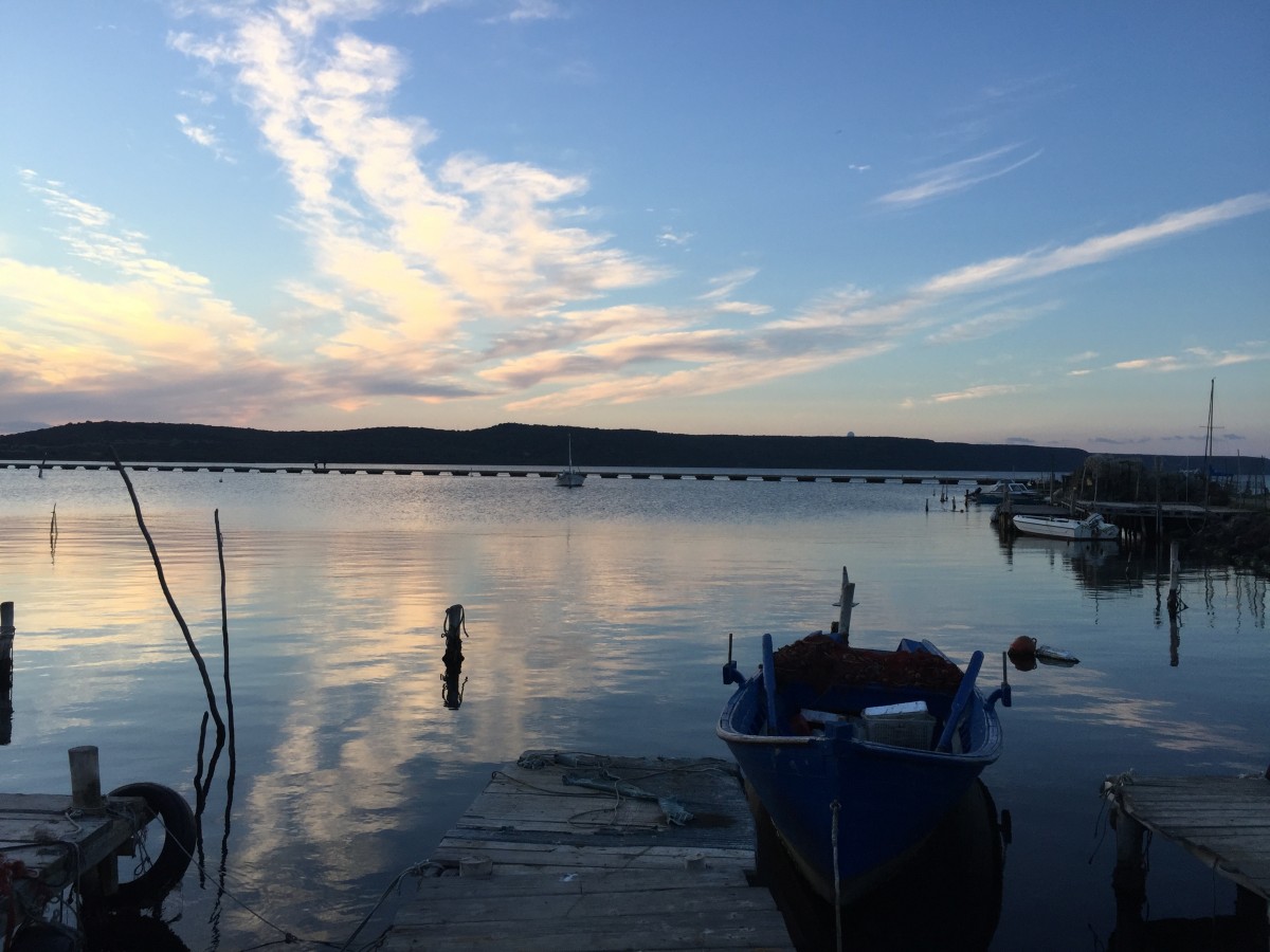 Il mare sembra una tavola azzurra: è calmo, le trasmette pace, la fa stare bene.