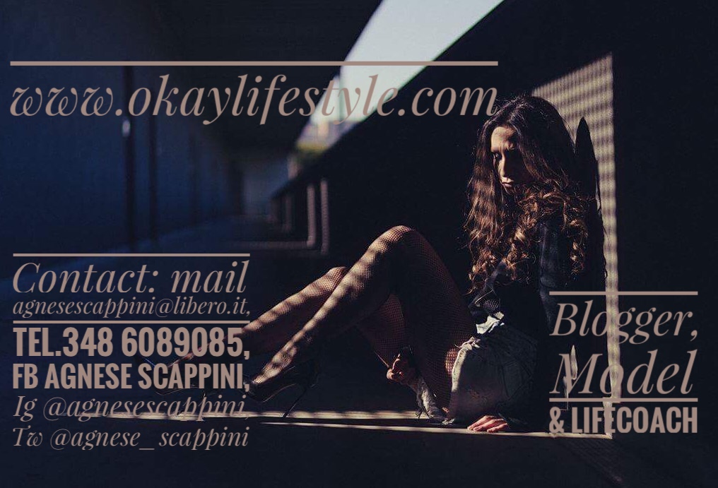 Eppure noi tutti siamo alla ricerca di queste due cose, cercare di standardizzarle per ottenerle; noi tutti tendiamo a queste dimensioni, le auguriamo, le progettiamo. Fondamentalmente quello che cerchiamo è, semplicemente, quello che ci fa star bene…e ‘quello che ci far star bene’, in realtà, sono cose molto semplici: fare una passeggiata con un amico, prendere un caffè, leggere un libro, parlare con un’amica ecc… (Camminare, Bere, Leggere, Parlare…torneremo con maggiore attenzione su questi nuclei essenziali). La quotidianità si costruisce di piccole parti, fate in modo che queste parti vi facciano sentire ‘okay’, fate in modo che il bilancio di ogni fine giornata sia ‘Okay’ (soprattutto: fate un bilancio ogni fine giornata!). Ecco il mio blog www.okaylifestyle.com propone e ruota attorno a questo: un buon stile di vita, un giusto stile di vita per ognuno. Poiché ognuno ha per sé un diverso parametro di benessere e deve trovarlo prima di poterlo raggiungere. Sono Agnese Scappini, dottoressa in Filosofia specializzata in “Etica delle Relazioni Umane”, dottoressa in Psicologia specializzanda in “Psicologia del lavoro”; mamma, life coach, modella e blogger. Sono su tutti i social (@agnesescappini) poiché lì dispiego gran parte del mio lavoro e ora sono qui per dare alcuni consigli e buoni propositi; o semplicemente per raccontarvi qualcosa di me che possiate utilizzare a mo’ di spunto per voi. Non starò a dirvi che la vita è ‘qualcosa di meraviglioso’, perché, sapete?, in fondo in fondo, consciamente o inconsciamente, ognuno di noi lo sa… ma starò qui a cercare di renderlo più comprensibile.