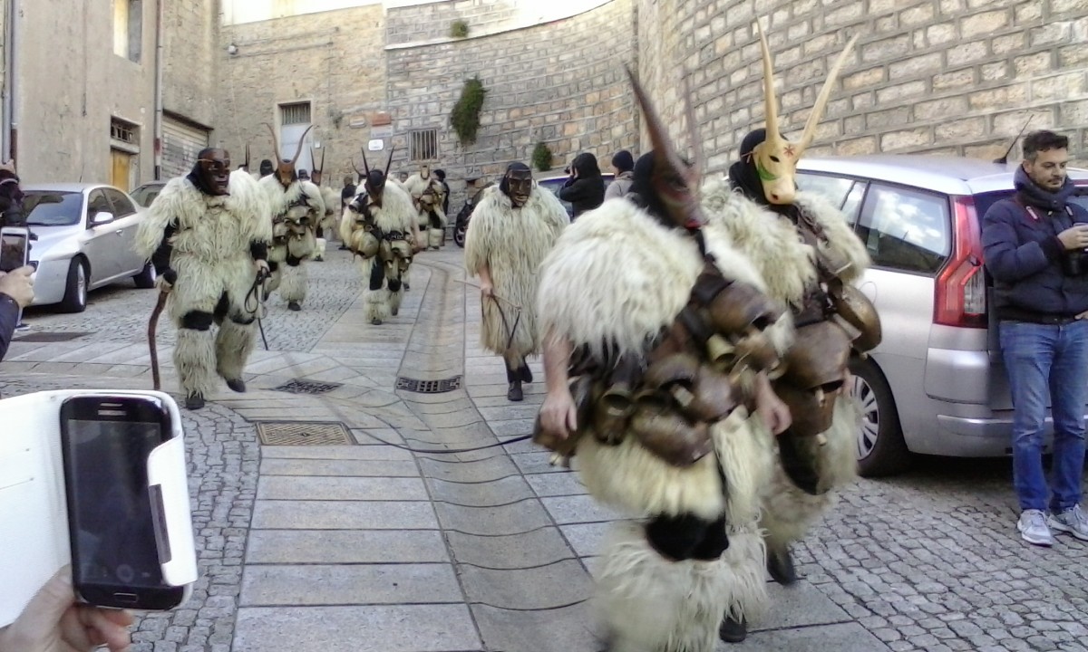 · Fonni, con le sue tre maschere: “Lìmpia” (pulita, limpida), che simboleggia l'eleganza e la bellezza, ed esprime il bene, l'amicizia e l'armonia; “Urthos” e “Buttùdos”. “S' Urthu” raffigura un animale con un campanaccio ed è tenuto in catena dai Buttùdos, uomini incappucciati, vestiti di nero con campanacci sulle spalle. Anche qua si inscena l'eterna lotta tra il bene e il male, tra l'uomo e l'animale. Sorprende l'agilità degli Urthos che, cercando di liberarsi dalle catene e di fuggire, si arrampicano ovunque fingendo di aggredire le persone e le cose che incontrano sul loro cammino;